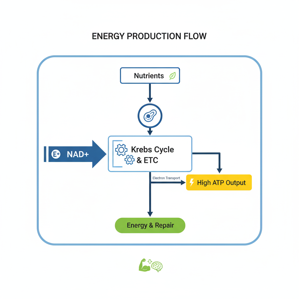 Without sufficient NAD+, this energy flow weakens-cells can’t produce ATP efficiently, leading to tiredness and sluggish repair.
